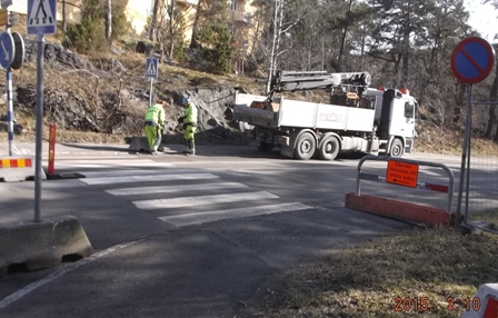 Foton nedan Övergångsstället vid tvåvägskorsningen Sparrmansvägen/Finn Malmgrens Väg flyttades högre upp i backen på Sparrmansvägen. Bild övre raden till höger; Detta hände innan straxt innan bilden togs, det var för smalt för en mamma med barnvagn att passera på trottoaren till höger om lastbilen, hon fick gå ut i gatan för att komma runt den fram till övergångsstället. Titta på bilden till vänster, trottoaren till höger är avstängd, två män som kom med lastbilen står bakom den. Hur tänkte de? Hade de varit vakna och observanta kunde en utav dem ha hjälpt gående att komma runt lastbilen. Foto nedan; är en utav Stockholms Läns högsta ekar i farozonen? MC